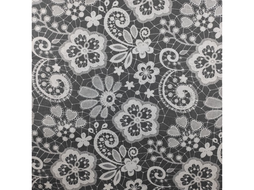 Bavlněná látka. Kytičky krajkové Bílé na Šedém