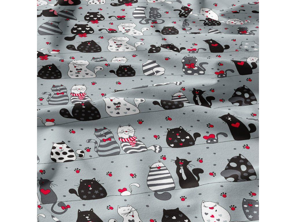 Bavlněná látka, metráž. Crazy cat na Šedém