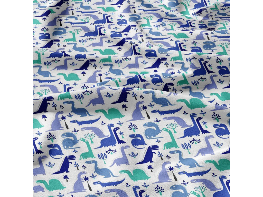 Bavlněná látka, metráž. Dinosaury Tyrkysové na Bílém