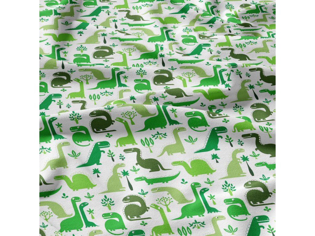 Bavlněná látka, metráž. Dinosaury Zelené na Bílém