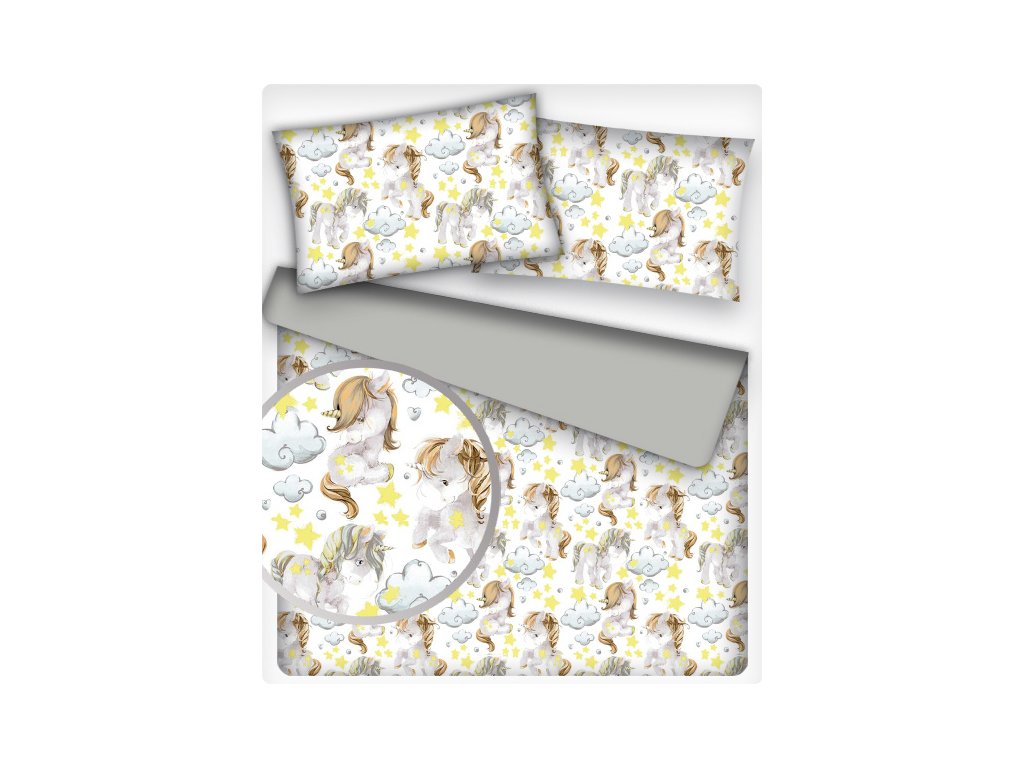 Bavlněná látka, metráž. Jednorožec Šedý na Bílém