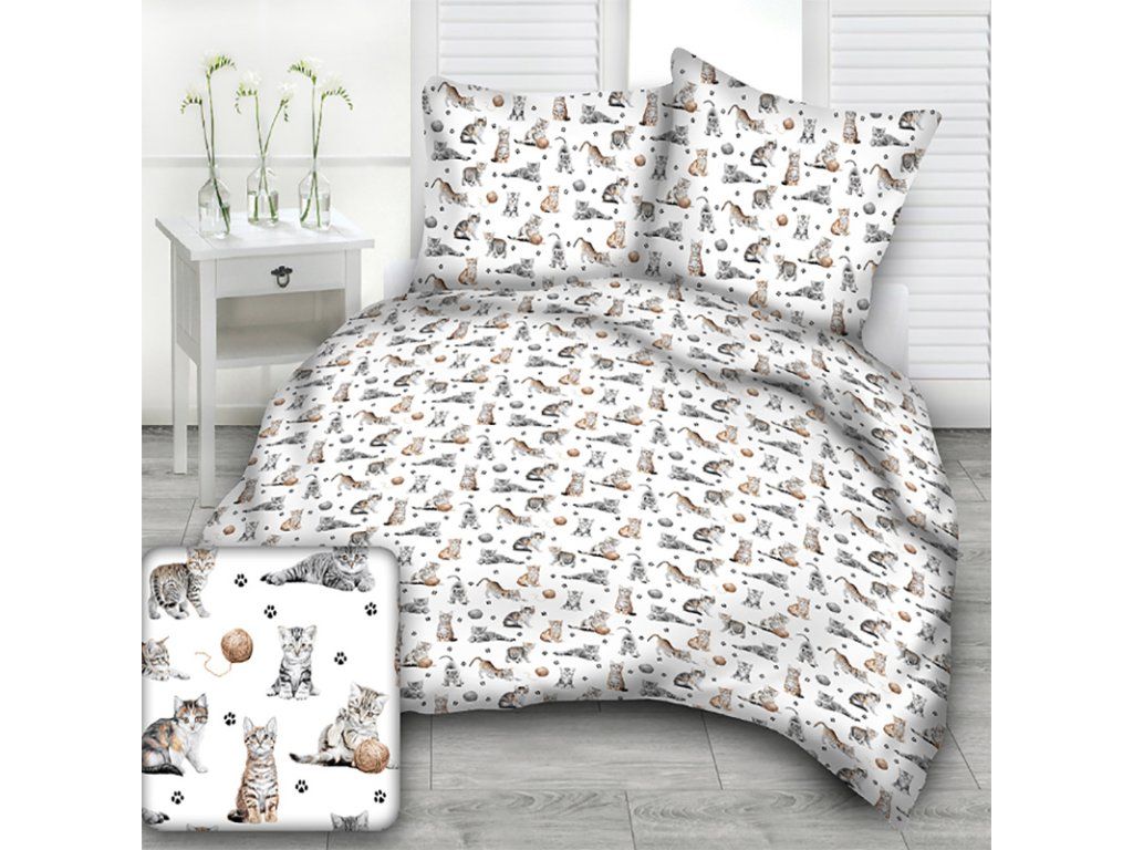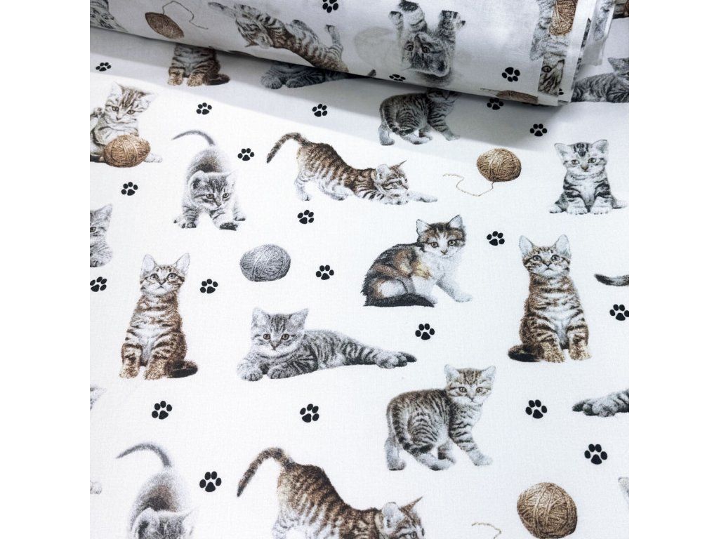 Bavlněná látka, metráž. Kočky a klubko na Bílém