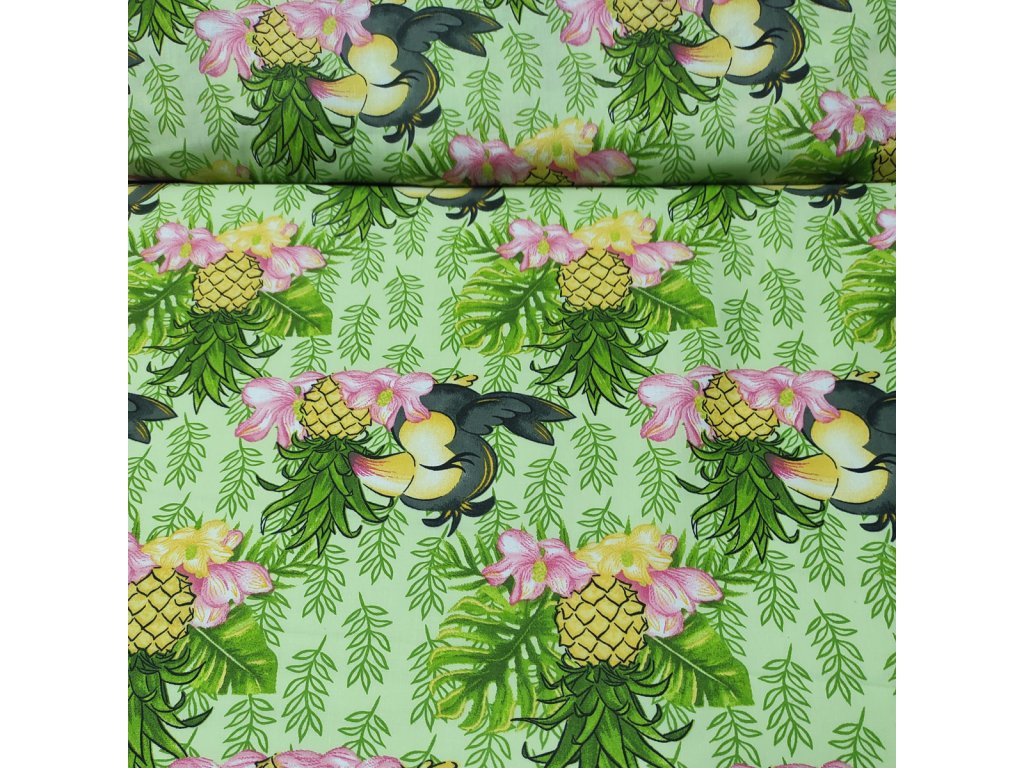 Bavlněná látka, metráž. Papoušek a ananas na Zeleném