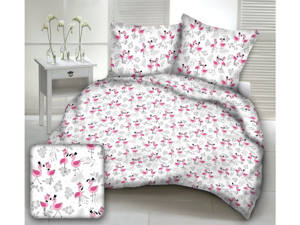 Bavlněná látka, metráž. Plameňáci na Bílém