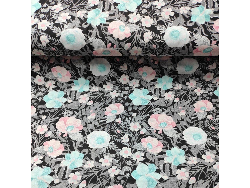 Bavlněná látka Kytičky na Černém