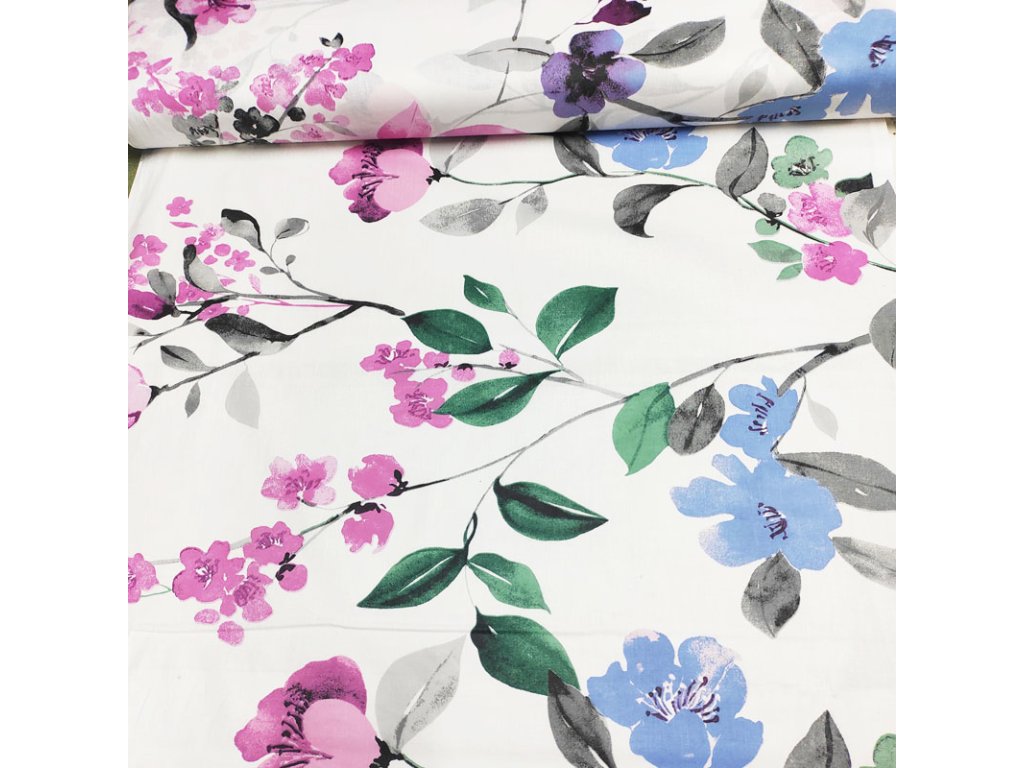 Bavlněná látka Kytičky Růžové a Modré na Bílém