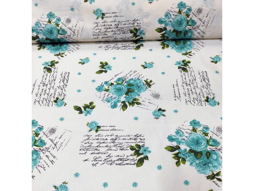 Bavlněná látka Kytičky Tyrkysové na Bíém