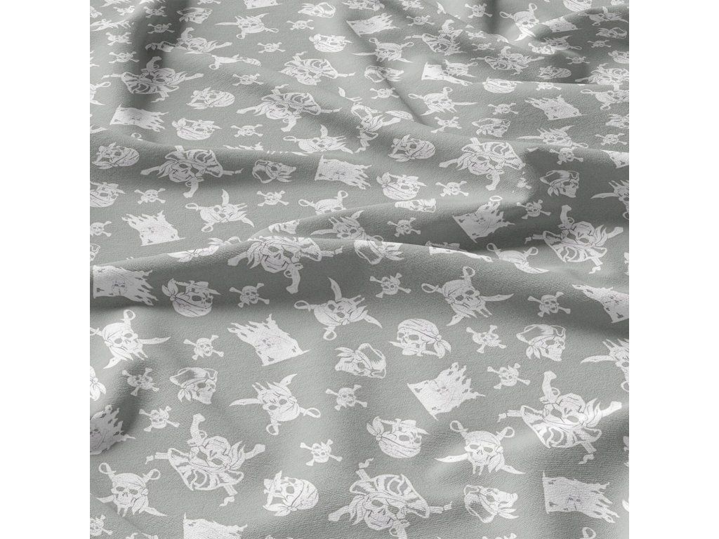 Bavlněná látka Lebky Bílé na Šedém