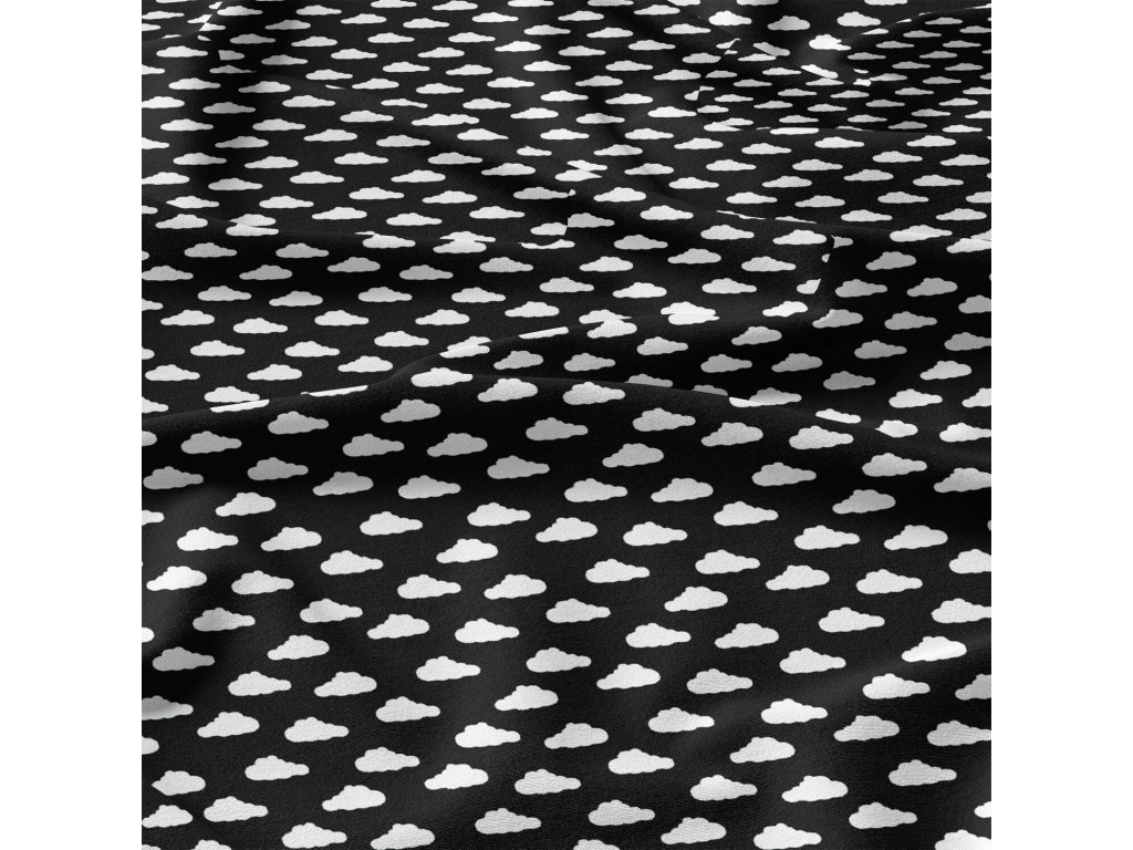 Bavlněná látka Mrak mini Bílý na Černém
