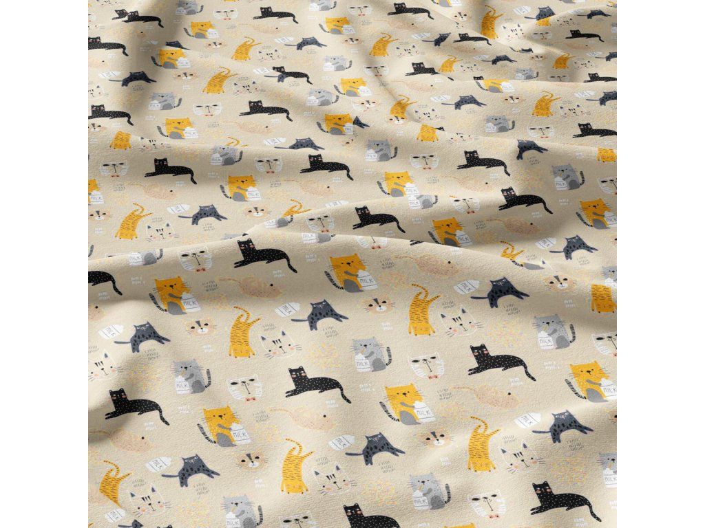 Bavlněné látky, metráž. Kočky Milk na Béžovém