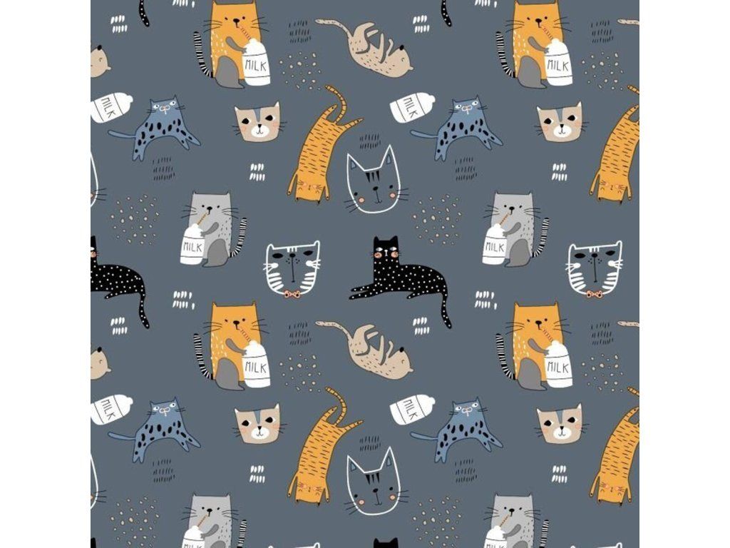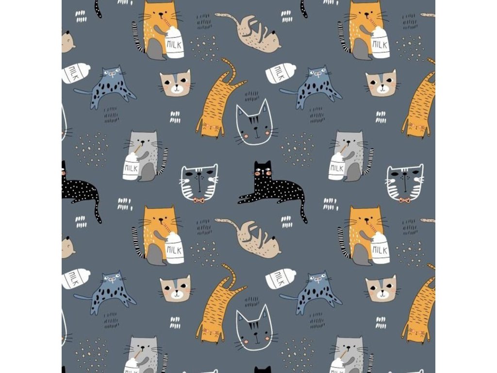 Bavlněné látky, metráž. Kočky Milk na Grafitovém
