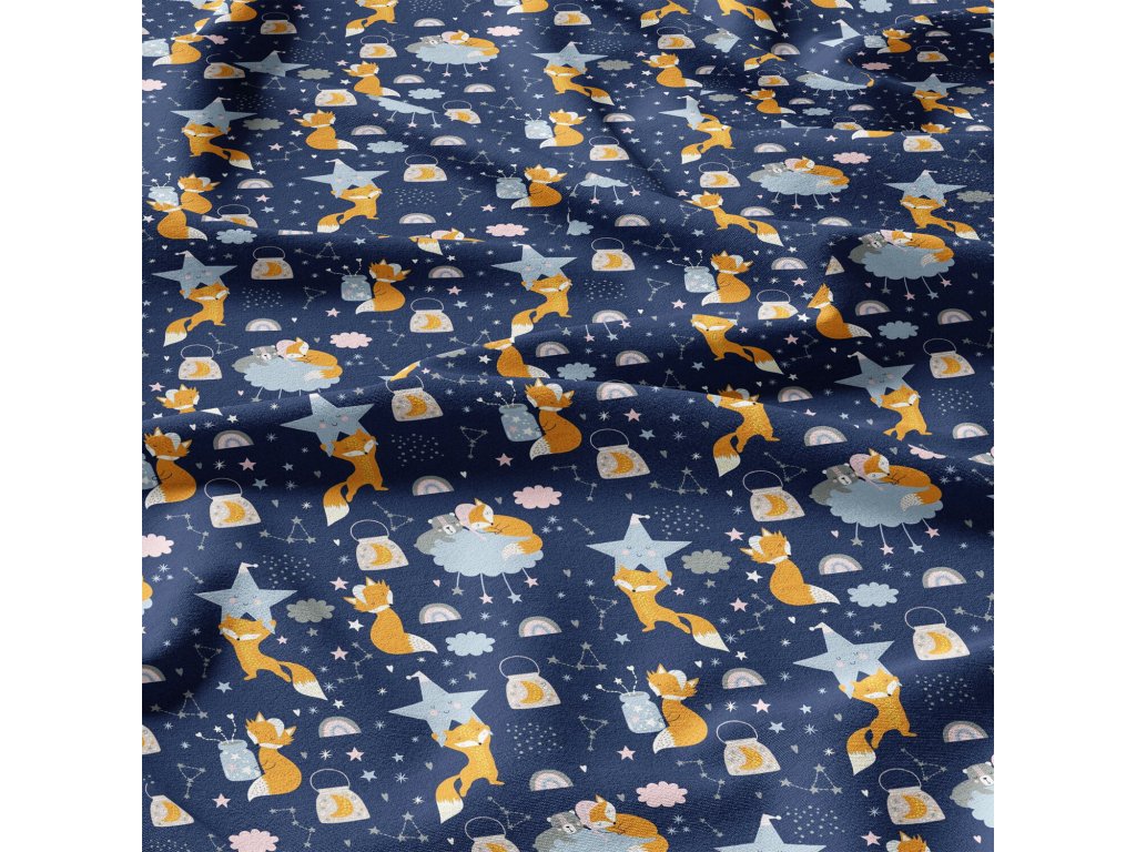 Bavlněné látky, metráž. Lišky na Modrém