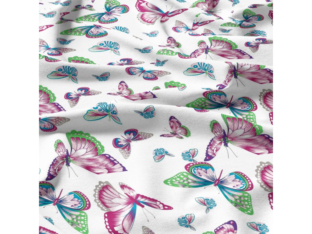Bavlněné látky, metráž. Motýlci na Bílém