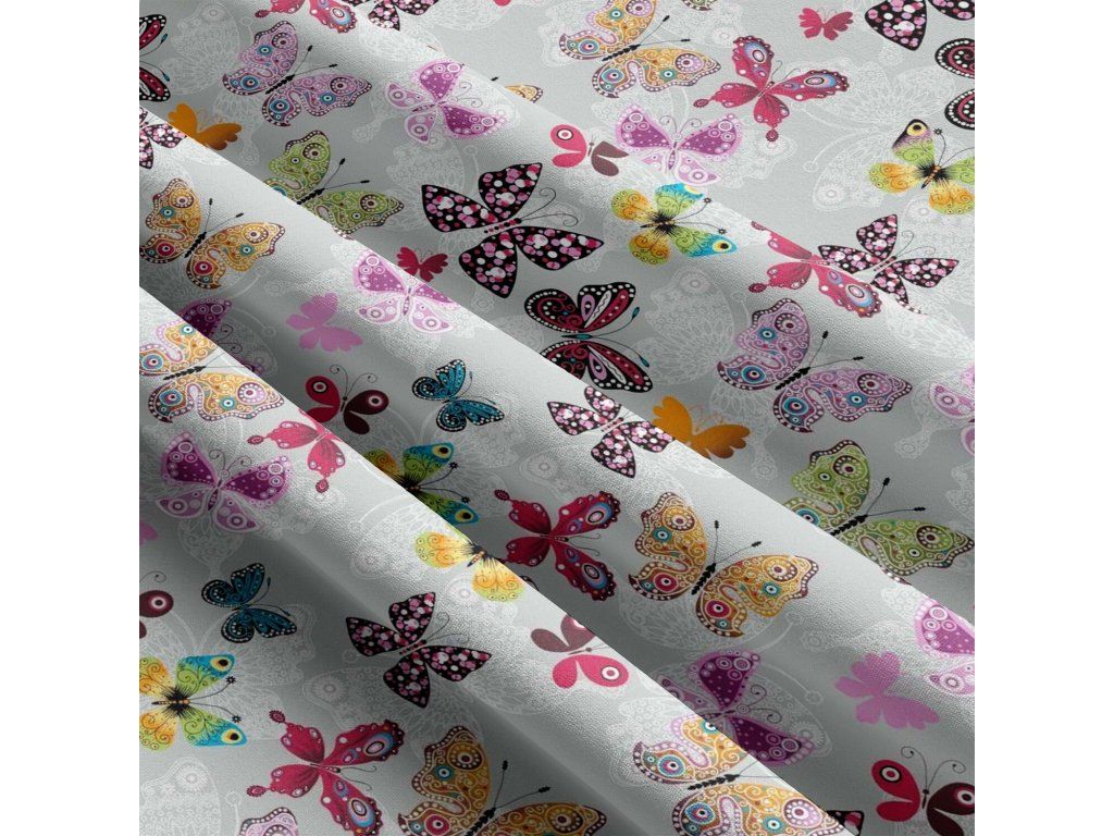 Bavlněné látky, metráž. Motýlci na Šedém