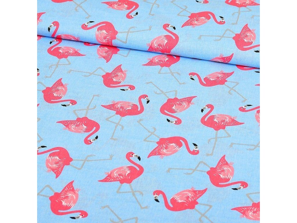 Bavlněné látky, metráž. Plameňák na Modrém