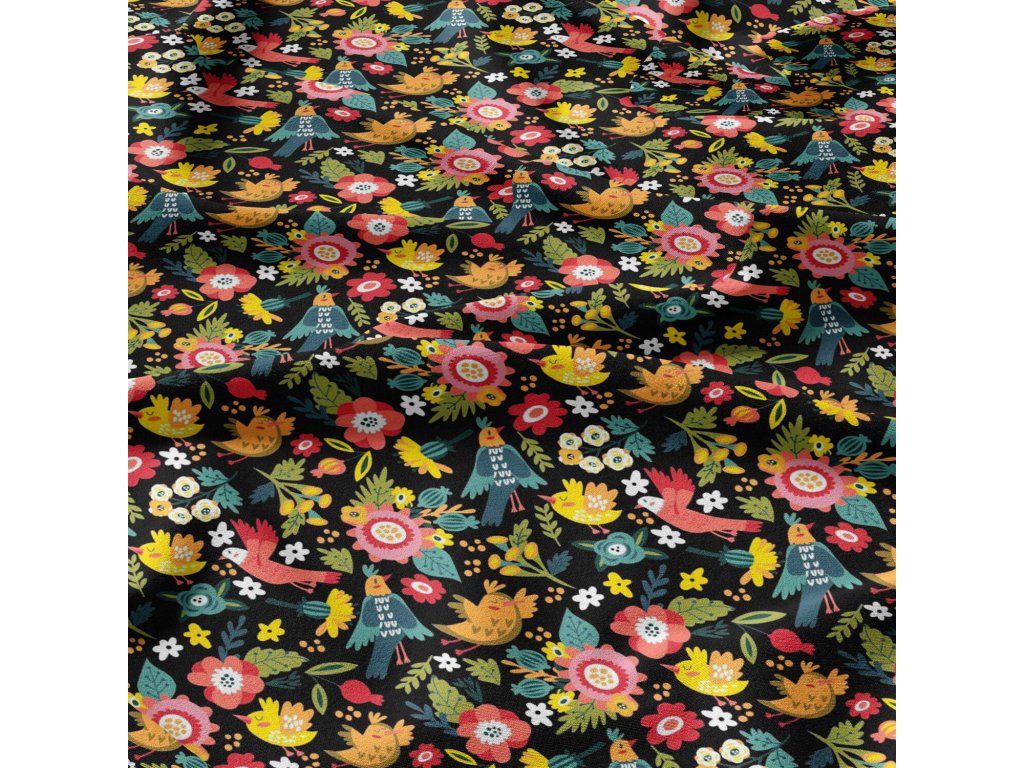 Bavlněné látky, metráž. Ptáci ráje na Černém