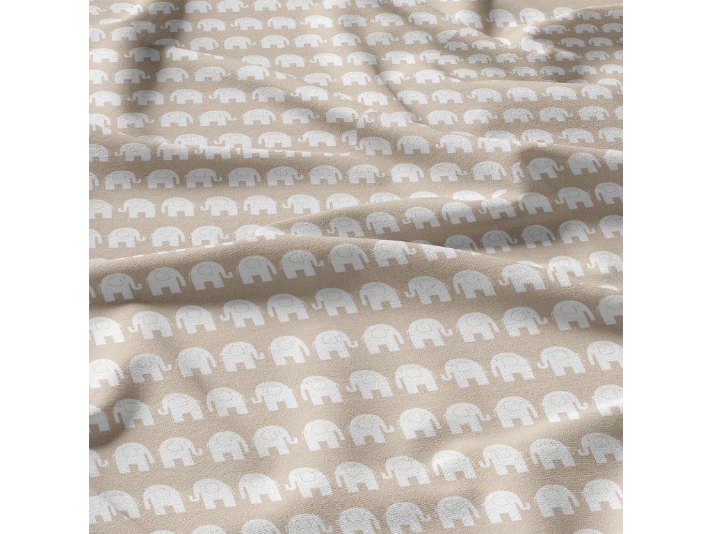Bavlněné látky, metráž. Sloni Bílé na Béžovém