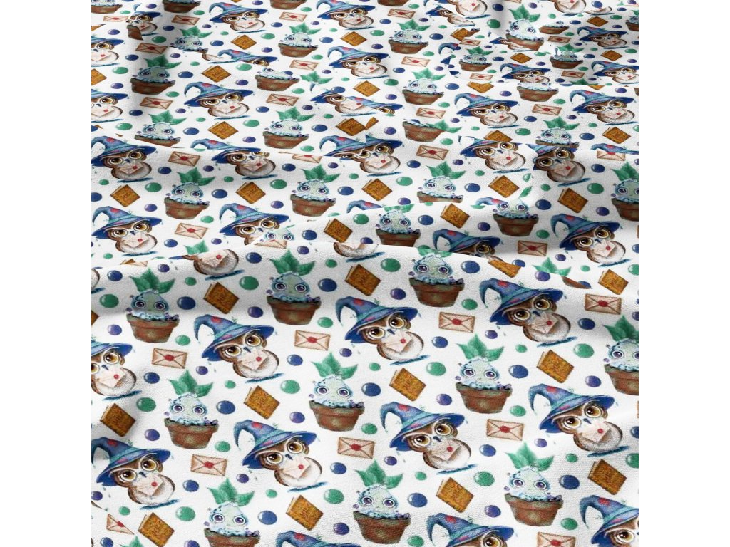 Bavlněné látky, metráž. Sova kouzelná na Bílém