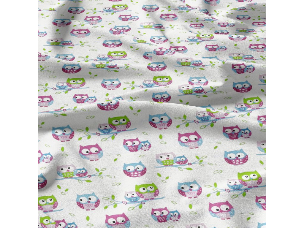 Bavlněné látky, metráž. Sovy Růžové na Bílém