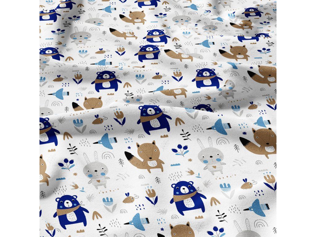 Bavlněné látky, metráž. Zvířátka Modrá na Bílém