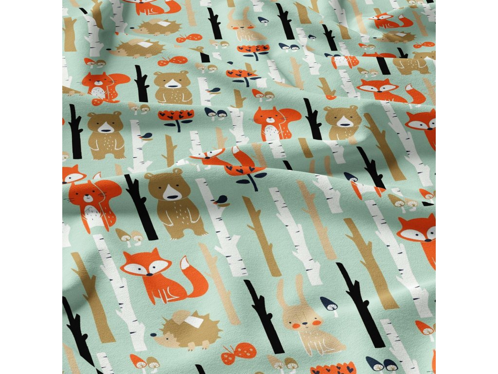Bavlněné látky, metráž. Zvířátka na Mentolovém