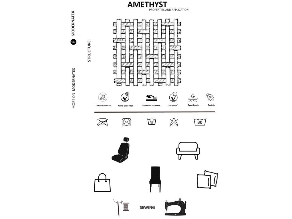 Potahová látka Ametyst je moderní čalounická tkanina, která vyniká kombinací vysoké odolnosti, pružnosti a příjemného omaku. Díky svým vlastnostem je vhodná jak pro profesionální čalounění, tak pro domácí projekty. Snadno se zpracovává i na běžném šicím stroji a nabízí dlouhou životnost i při každodenním používání.