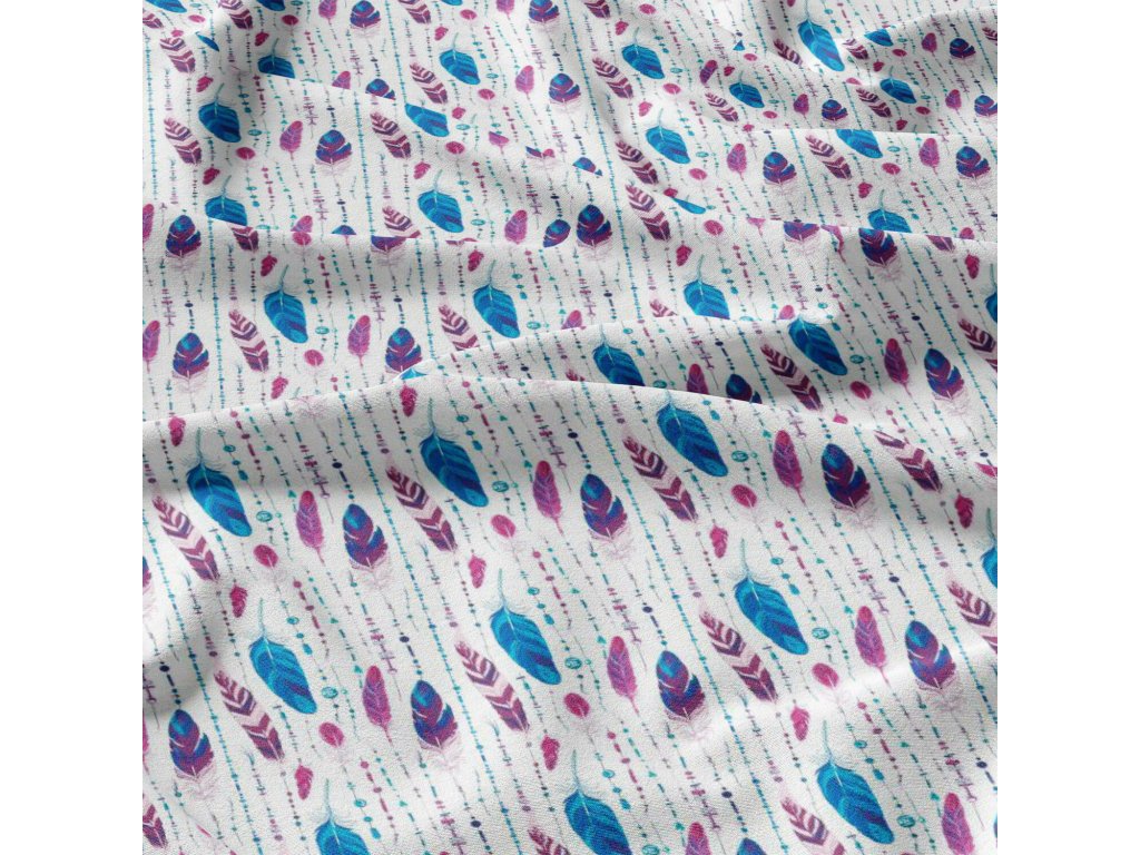 Dekorační bavlněná látka, metráž, Pírka Tyrkysová a Amarantová