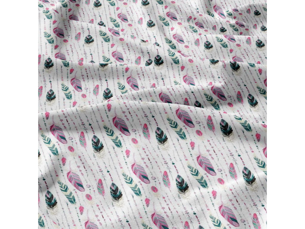 Dekorační bavlněná látka, metráž, Pírka Zelená a Růžová