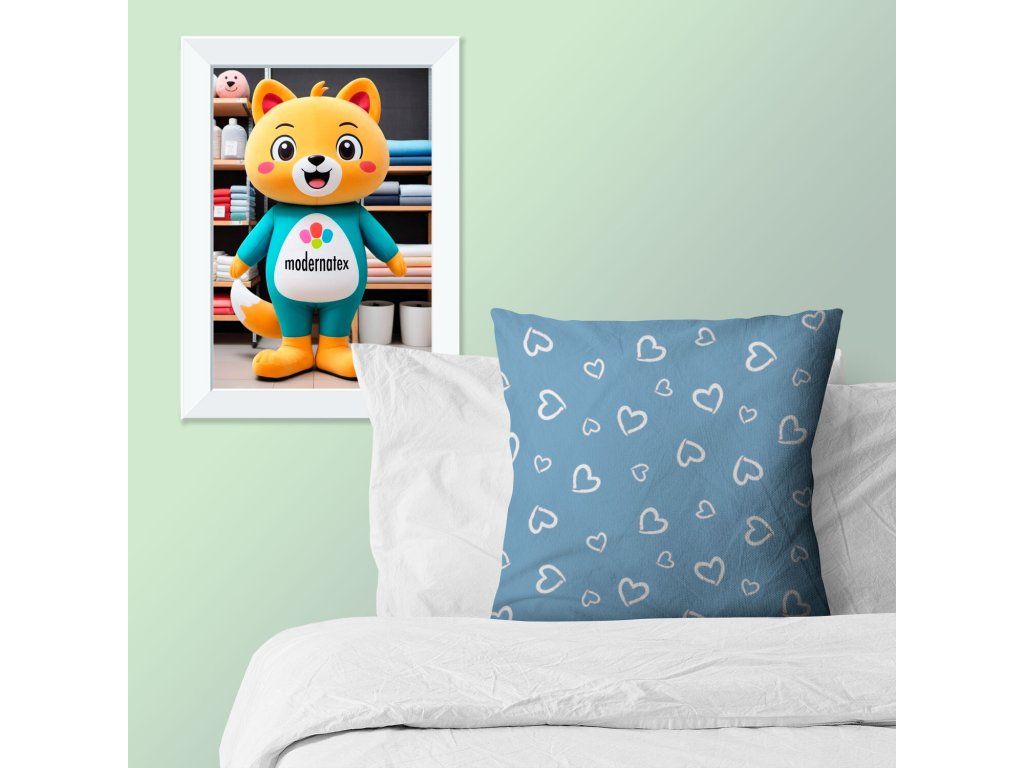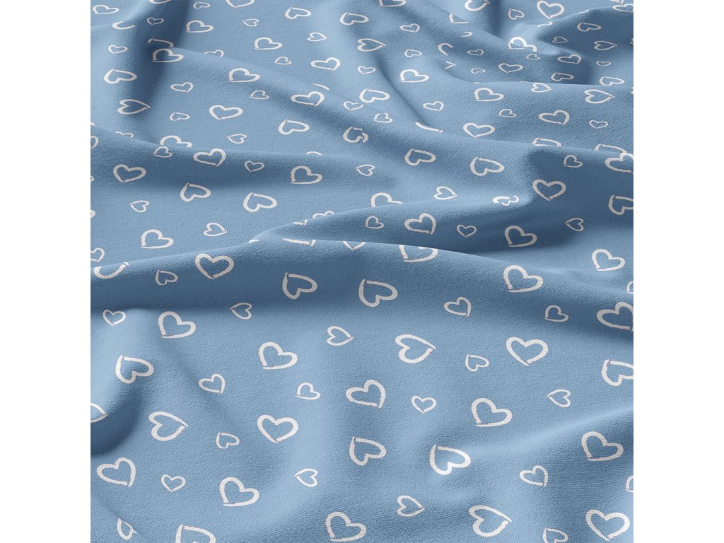 Dekorační bavlněná látka, metráž, Srdíčka Bílá na Modrém