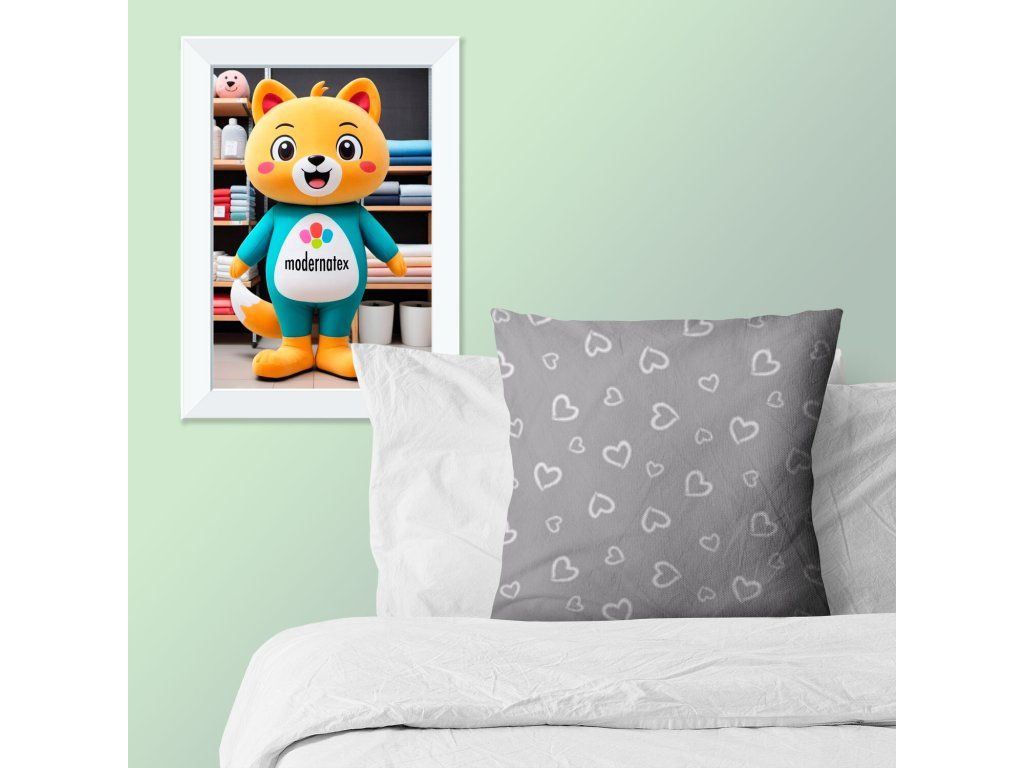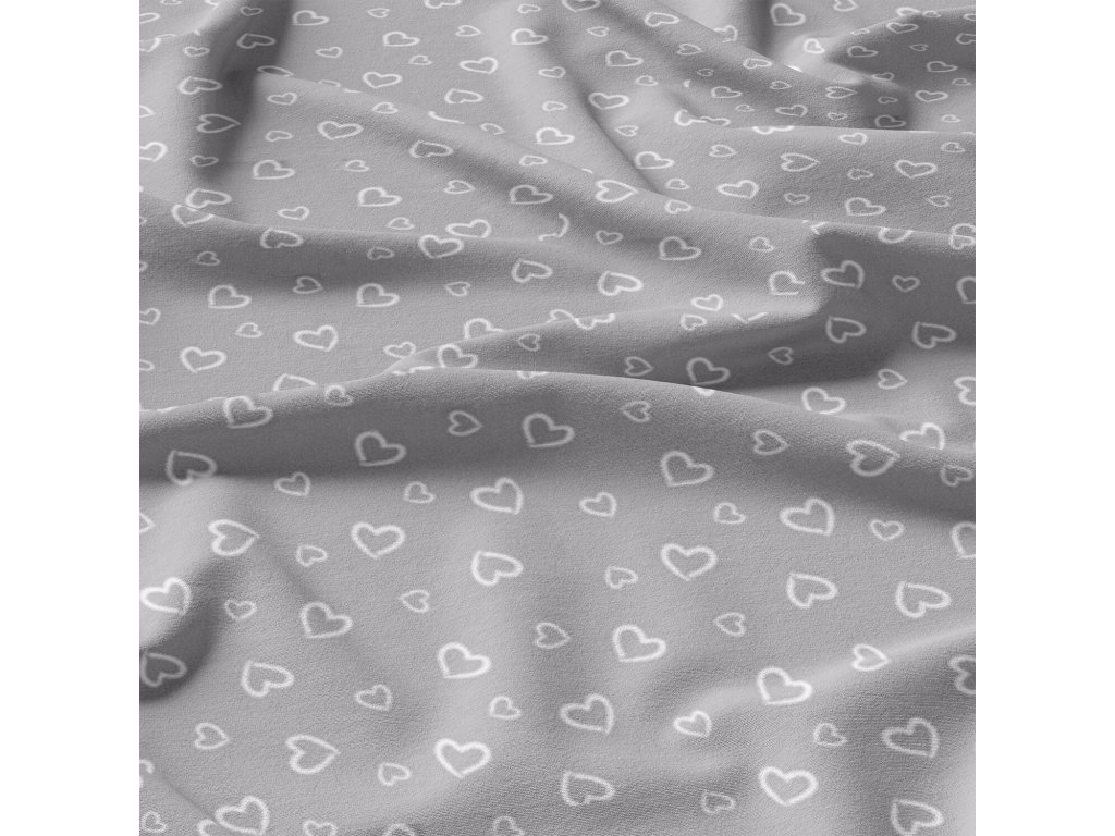 Dekorační bavlněná látka, metráž, Srdíčka Bílá na Šedém