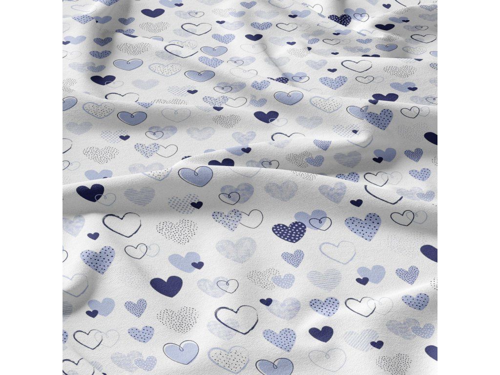 Dekorační bavlněná látka, metráž, Srdíčka Modrá na Bílém