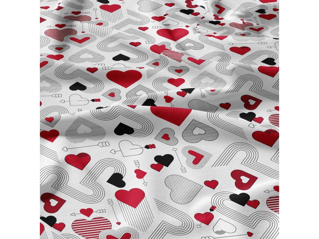 Dekorační bavlněná látka, metráž, Srdíčka na Bílém