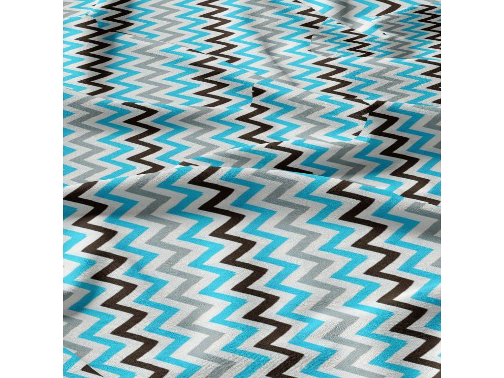 Dekorační dětské bavlněné látky, metráž. Cikcak Modrý, Šedý a Černý