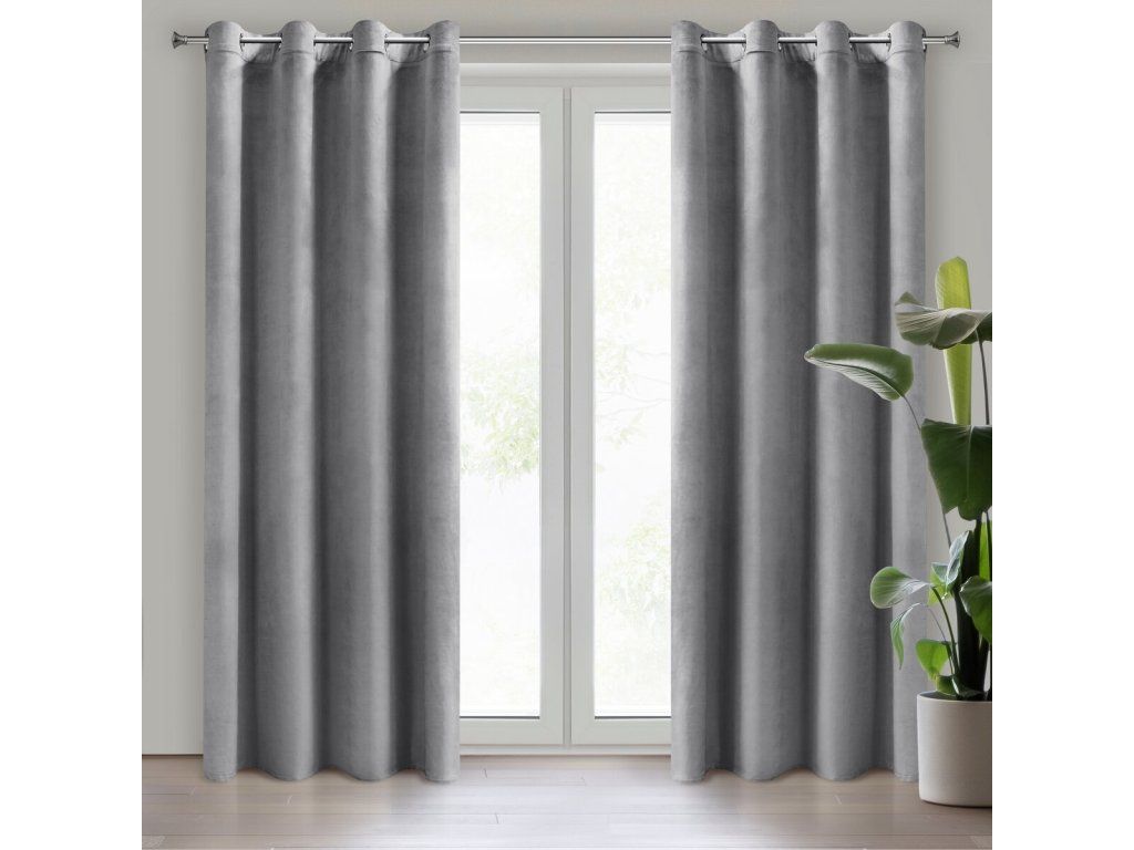 Dekorační velurový závěs s průchodkami ŠEDÁ 140x250 cm
