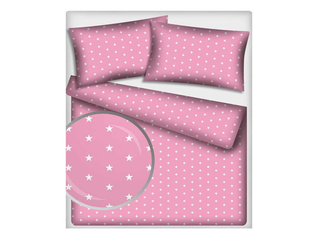 Dětská bavlněná látka Hvězdy Bílé na Růžovém