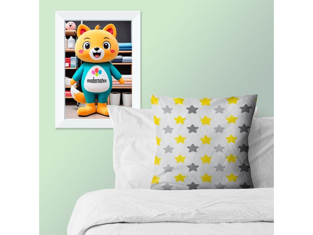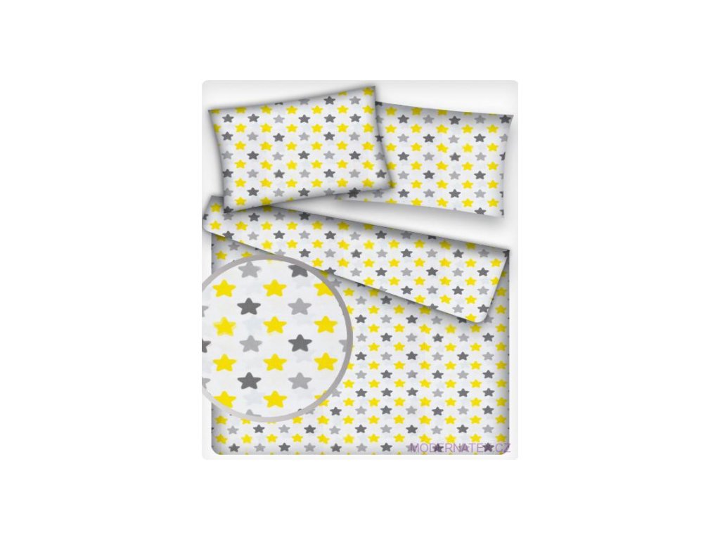 Dětská bavlněná látka Hvězdy Šedé a Žluté na Bílém