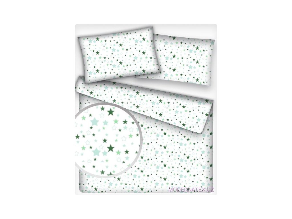 Dětská bavlněná látka Hvězdy Zelené na Bílém