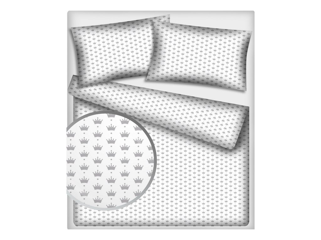 Dětská bavlněná látka Koruny Šedé na Bílém