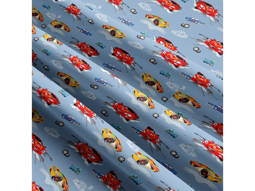 Dětská bavlněná látka metráž Auto sport na Modrém