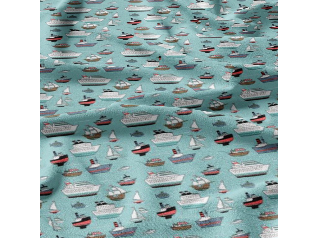 Dětská bavlněná látka metráž Lodě na Modrém