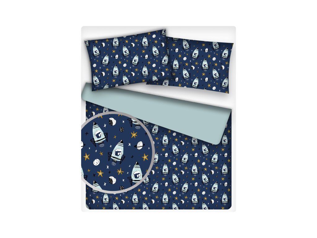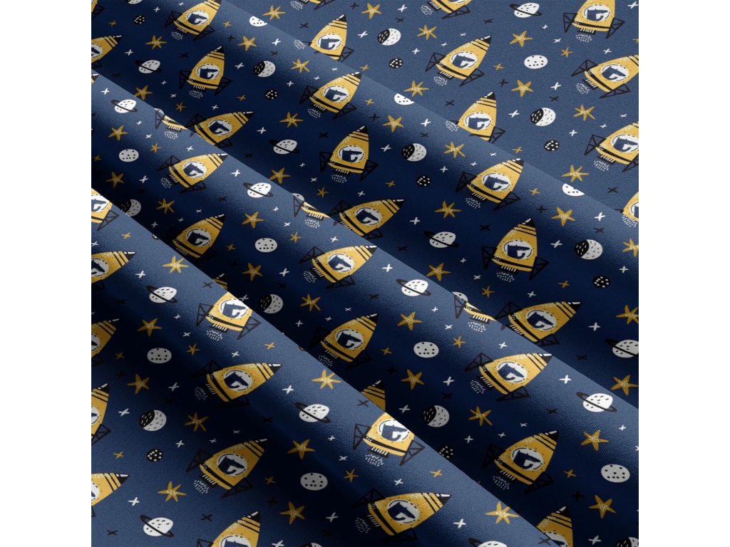 Dětská bavlněná látka metráž Rakety Žluté na Granátovém