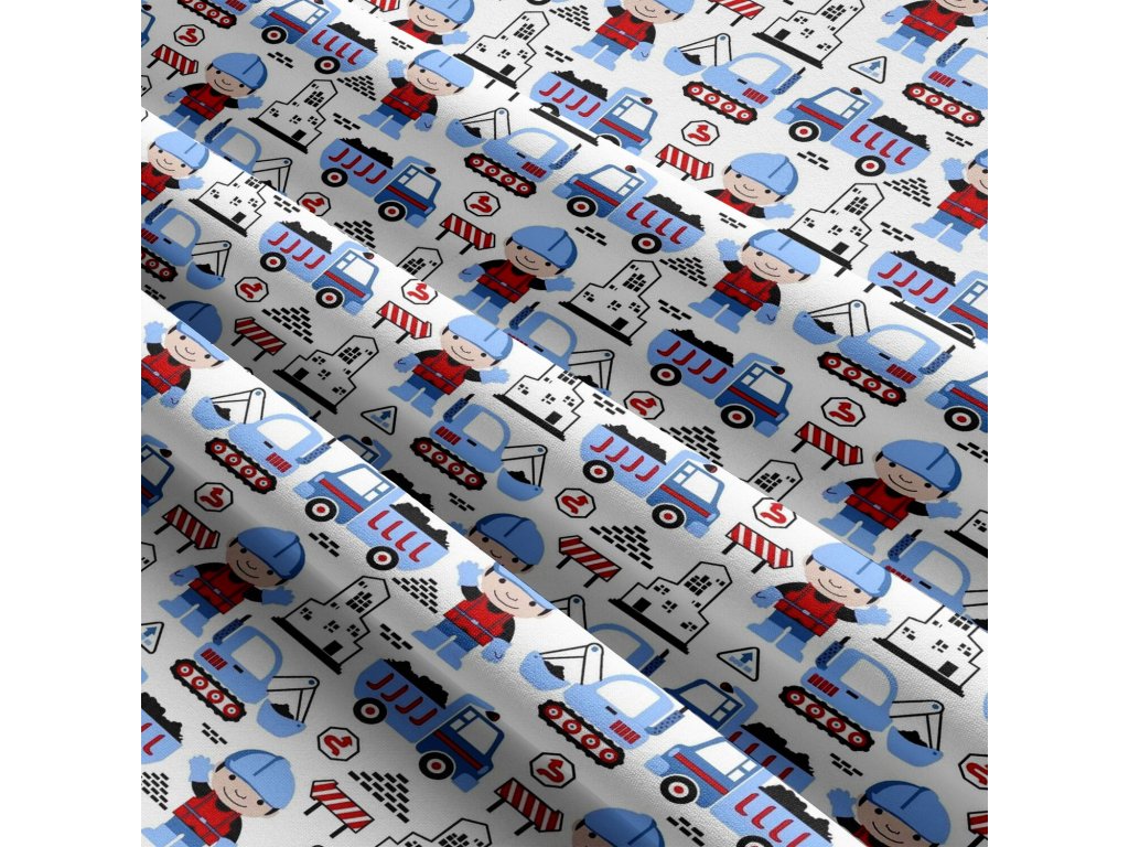 Dětská bavlněná látka metráž Stavební stroje na Modrém