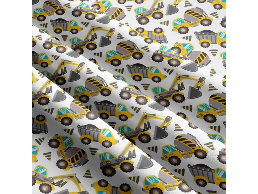 Dětská bavlněná látka metráž Stavební stroje Šedé na Bílém