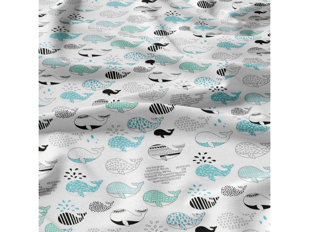 Dětská bavlněná látka metráž Velryba Tyrkysová