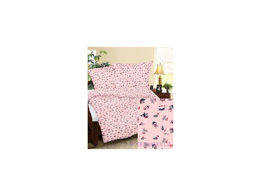 Dětská bavlněná látka metráž Velryby a lodě na Růžovém