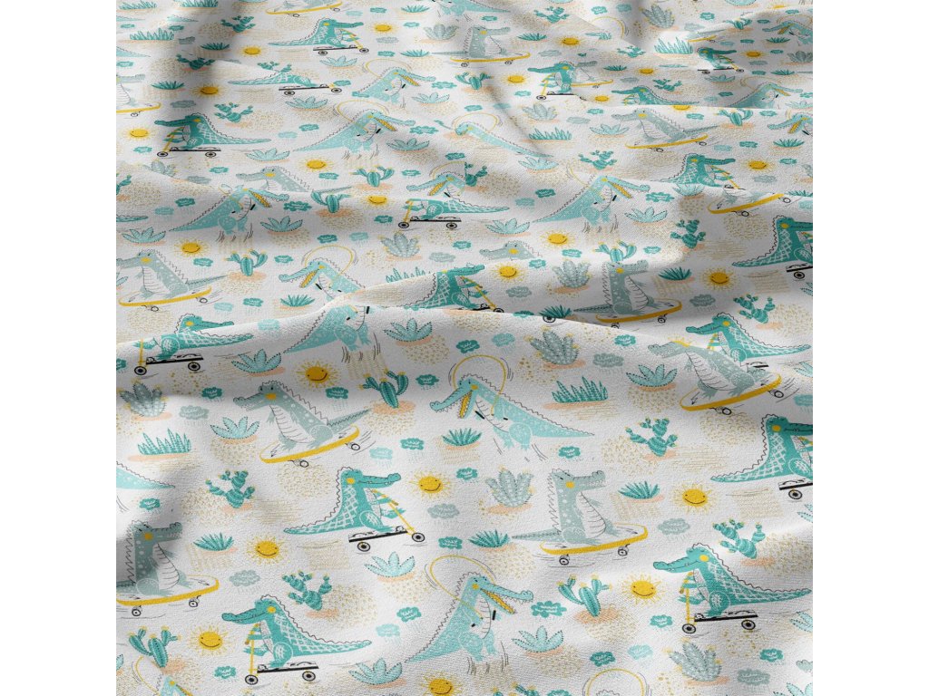 Dětská bavlněná látka metráž Veselé krokodýli Modré na Bílém