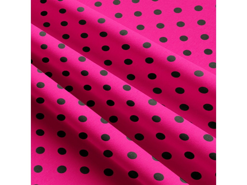 Dětské bavlněné látky, metráž. Puntík 10 mm, Černý na Amarantovém