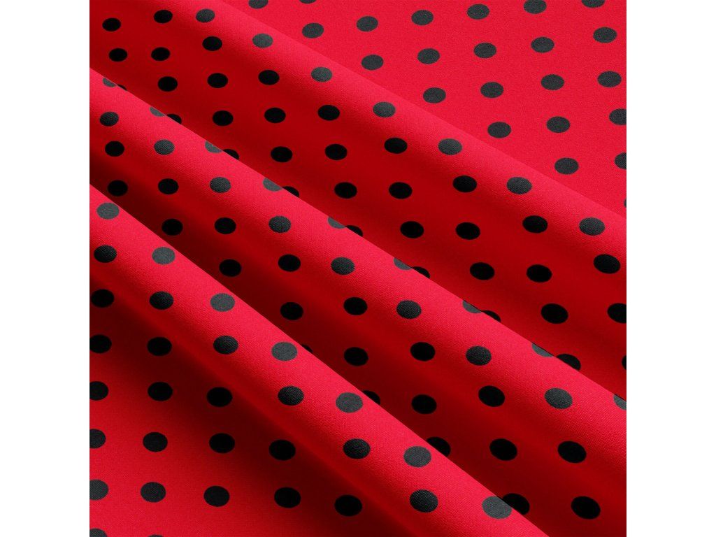 Dětské bavlněné látky, metráž. Puntík 10 mm, Černý na Červeném