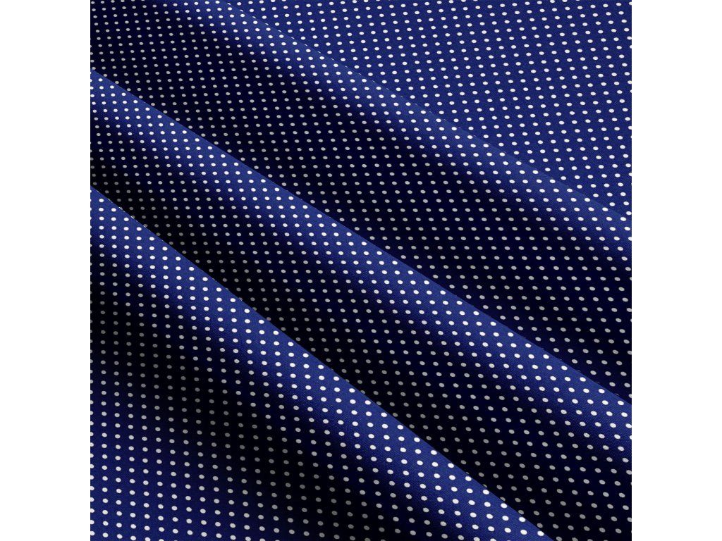 Dětské bavlněné látky, metráž. Puntík 2 mm, Bílý na Modrém