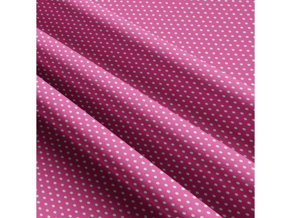 Dětské bavlněné látky, metráž. Puntík 3 mm, Bílý na Amarantovém